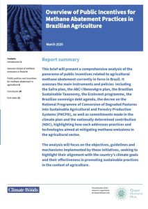 This brief will present a comprehensive analysis of the panorama of public incentives related to agricultural methane abatement currently in force in Brazil. It assesses the main instruments and policies including the Safra plan, the ABC+/RenovAgro plan, the Brazilian Sustainable Taxonomy, the Ecoinvest programme, the Brazilian sovereign debt agenda, the decree on the National Programme of Conversion of Degraded Pastures into Sustainable Agricultural and Forestry Production Systems (PNCPD), as well as commitments made in the climate plan and the nationally determined contribution (NDC), highlighting how each addresses practices and technologies aimed at mitigating methane emissions in the agricultural sector.